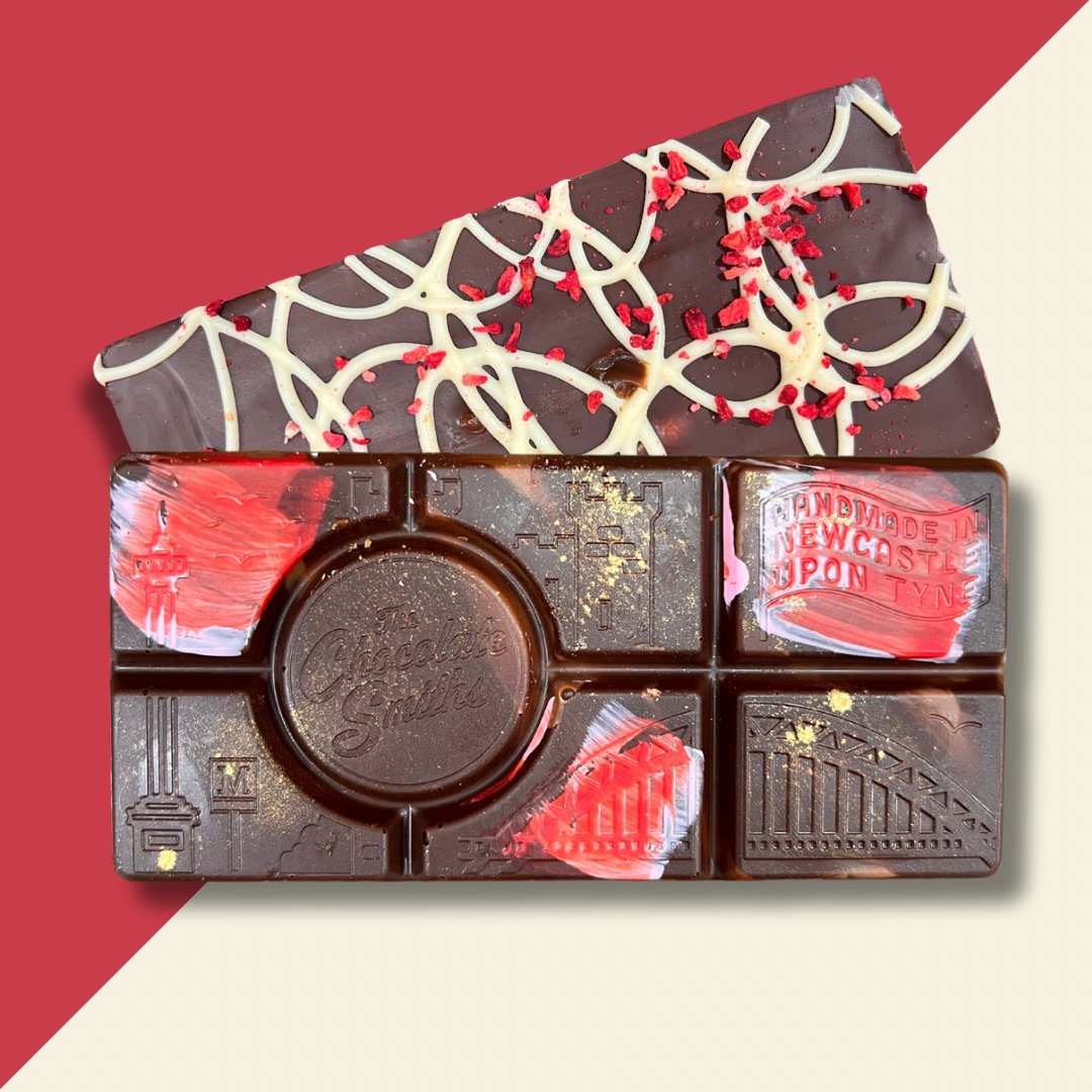 Dark Chocolate (31.8%) [ Cocoa Mass, Sugar, Cocoa Butter, Emulsifier (Soy Lecithin) And Vanilla Extract], Milk Chocolate (25.5%) [Sugar, Milk Powder, Cocoa Butter, Cocoa Mass, Soy Lecitin, Vanilla Extract], White Chocolate Ganache (19.1%) [White Chocolate (50%) [Sugar, Cocoa Butter, Milk Powder, Soy Lecithin (Emulsifier) And Vanilla Extract], Pasteurised Double Cream (30%) (Milk), Caster Sugar (10%), Glucose Syrup (10%)], Brownie Filling (12.7%) [Pasteurised Double Cream (36.8%) (Milk), Caster Sugar (34.3%), Unsalted Butter (9.8%) (Milk), Glucose Syrup (8.3%), Dark Chocolate (7.4%) [ Cocoa Mass, Sugar, Cocoa Butter, Emulsifier (Soy Lecithin) And Vanilla Extract], Cocoa Powder (3.4%)], Cherry Gel (6.4%) [Cherry Puree (49%) [Sour Cherry 89, 8%, Sugar ], Caster Sugar (49%), Pectin (2%)], Sour Cherry (1.3%) [ Glucose Syrup (50 55%), Sour Cherry (35 40%), Sugar (5 10%), Modified Starch (<5%, Derived From Potato), Sodium Alginate (<3% Derived From Brown Algae)], Red Cocoa Butter (1.3%) [Cocoabutter Colour:E129, Colour:E102], Pink Cocoa Butter (1.3%), Gold Lustre Powder (0.64%) [Colours (Titanium Dioxide, Iron Oxides)]